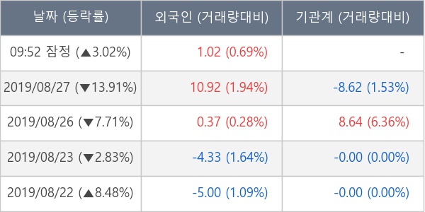 [표] 외국인ㆍ기관 순매매량 (단위 만주)