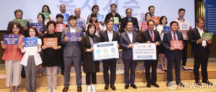 [서울=뉴스핌] 이한결 기자 = 박원순 서울시장, 정연보 서울특별시사회복지협의회장 및 관계자들이 5일 오후 서울 중구 서울시청에서 열린 ‘제20회 사회복지의 날 기념 2019 서울사회복지대회’에서 서울시민복지기준 2.0 전달 후 기념촬영을 하고 있다. 2019.09.05 alwaysame@newspim.com