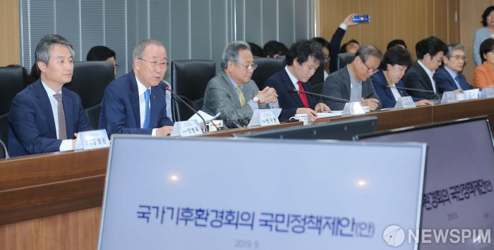 [서울=뉴스핌] 윤창빈 기자 = 반기문 국가기후환경위원회 위원장(왼쪽 두번쨰)이 27일 오후 서울 중구 콘코디언빌딩에서 열린 국가기후환경회의에서 개회사를 하고 있다. 2019.09.27 pangbin@newspim.com