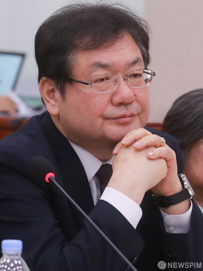 [서울=뉴스핌] 최상수 기자 = 김대관 한국문화관광연구원 원장이 10일 오전 서울 여의도 국회 문화체육관광위원회에서 열린 사행산업통합감독위원회, 한국관광공사 등에 대한 국정감사에서 생각에 잠겨 있다. 2019.10.10 kilroy023@newspim.com
