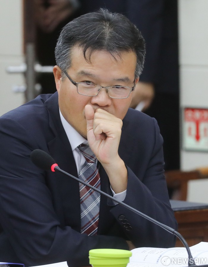 [서울=뉴스핌] 최상수 기자 = 박연재 원주지방환경청 청장이 10일 오전 서울 여의도 국회 환경노동위원회에서 열린 한강유역환경청, 수도권대기환경청 등에 대한 국정감사에서 생각에 잠겨 있다. 2019.10.10 kilroy023@newspim.com