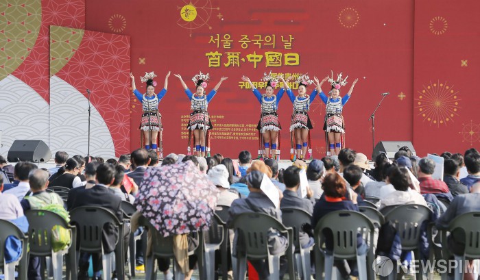 [서울=뉴스핌] 윤창빈 기자 = 20일 오후 서울 중구 서울시청 광장에서 열린 제7회 서울 중국의 날 행사에서 중국 전통 공연이 열리고 있다. 서울특별시와 주한중국대사관이 주최한 이번 행사는 60여개의 부스에서 중국 소수민족 의상체험, 중국 서화 그리기 등 다양한 체험행사가 마련되었다. 2019.10.20 pangbin@newspim.com