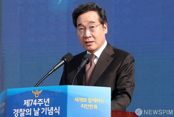 [인천=뉴스핌] 정일구 기자 = 이낙연 국무총리가 21일 오전 인천 연수구 송도컨벤시아에서 열린 '제74주년 경찰의 날 기념식'에서 축사를 하고 있다. 2019.10.21 mironj19@newspim.com