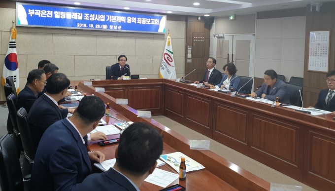 [창녕=뉴스핌] 남경문 기자 = 경남 창녕군은 28일 군청 전자회의실에서 군의원, 관광협의회, 관련부서장, 용역업체가 참석한 가운데 부곡온천 힐링둘레길 조성사업 타당성 조사 및 기본계획 수립용역 최종보고회를 개최했다고 29일 밝혔다.
