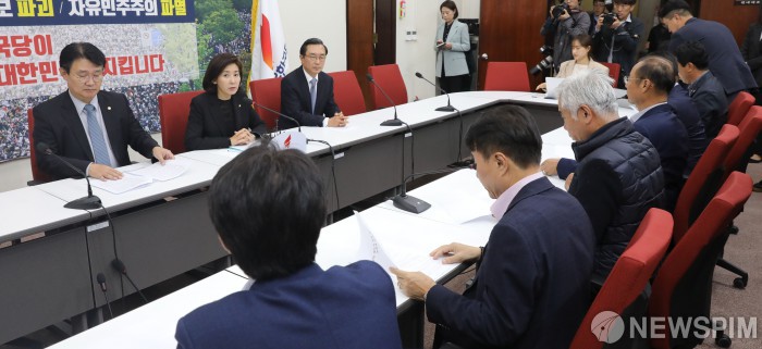 [서울=뉴스핌] 최상수 기자 = 나경원 자유한국당 원내대표가 5일 오후 서울 여의도 국회에서 농민단체와 간담회를 가지고 있다. 2019.11.05 kilroy023@newspim.com