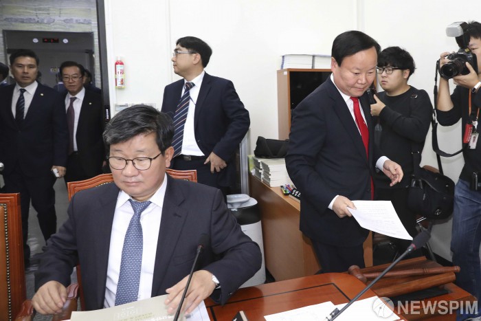 [서울=뉴스핌] 이형석 기자 = 김재원 소위원장이 11일 오전 서울 여의도 국회에서 열린 예산결산특별위원회 예산안조정소위원회의에 참석하고 있다. 예산소위는 11일부터 가동하며 예결위는 오는 29일 전체회의를 열어 내년도 예산안을 의결할 계획이다. 소위 구성은 간사 합의에 따라 더불어민주당 7명, 한국당 6명, 바른미래당 2명 등 15명으로 구성된다. 소위원장은 관례에 따라 김재원 예결위원장이 맡았다. 2019.11.11 leehs@newspim.com