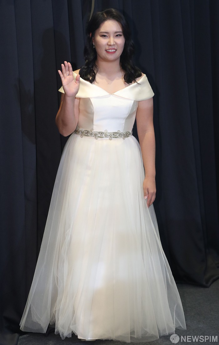 [서울=뉴스핌] 정일구 기자 = 19일 오후 서울 강남구 그랜드 인터컨티넨탈 서울 파르나스에서 열린 '2019 KLPGA 대상 시상식' 레드카펫에서 김보아가 포즈를 취하고있다. 2019.11.19 mironj19@newspim.com