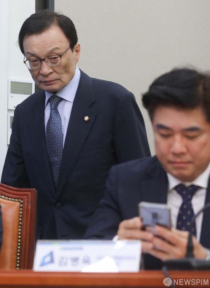 [서울=뉴스핌] 최상수 기자 = 이해찬 더불어민주당 대표가 28일 오전 서울 여의도 국회에서 열린 국회혁신특별위원회 회의에 참석하며 김병욱 의원을 바라보고 있다. 2019.11.28 kilroy023@newspim.com