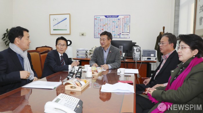 [서울=뉴스핌] 이한결 기자 = 김관영 바른미래당 의원, 윤소하 정의당 원내대표, 윤호중 더불어민주당 사무총장, 유성엽 대안신당 창당준비위원장, 박주현 민주평화당 의원이 8일 오후 서울 여의도 국회에서 열린 4+1 선거법 협의체 회의에 참석해 있다. 2019.12.08 alwaysame@newspim.com
