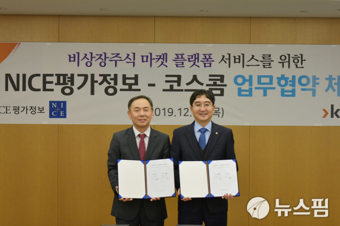 코스콤은 19일 서울 여의도 본사에서 NICE평가정보와 함께 '비 마이 유니콘'을 활용하는 비상장 기업들의 정확한 정보를 시장에 제공하기 위한 업무협약(MOU)을 맺었다고 밝혔다.