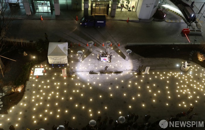 [서울=뉴스핌] 정일구 기자 = 23일 오후 서울 종로구 인사동 태화관터에서 '3·1 독립선언광장 조명 점등식'이 열리고 있다. 인사동 태화관터는 1919년 3월1일 민족대표들이 독립선언서를 낭독하며 3·1운동의 발원지가 된 곳이다. 2019.12.23 mironj19@newspim.com
