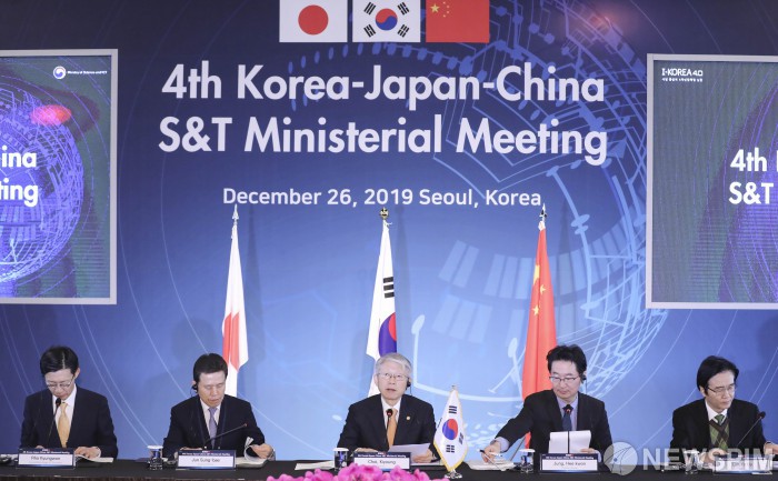 [서울=뉴스핌] 이한결 기자 = 최기영 과학기술정보통신부 장관이 26일 오전 서울 중구 더 플라자 호텔에서 열린 ‘제4차 한·중·일 과학기술장관회의’에서 인사말을 하고 있다. 2019.12.26 alwaysame@newspim.com
