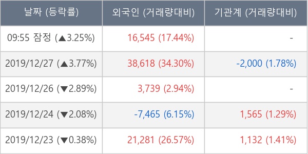 [표] 외국인ㆍ기관 순매매량 (단위 주)