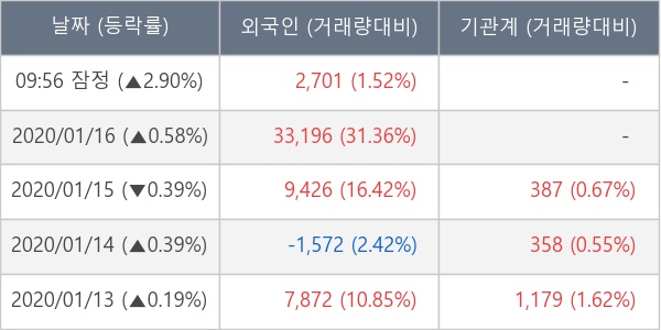 [표] 외국인ㆍ기관 순매매량 (단위 주)