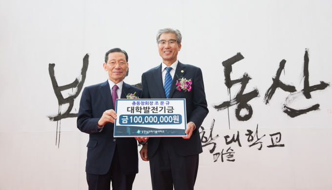 [진주=뉴스핌] 이경구 기자 = 경남과기대는 조문규 명예총장이 발전기금 1억을 전달했다고 3일 밝혔다. 지난 2018년 1억 기부에 이어 총 2억원을 기부했다.