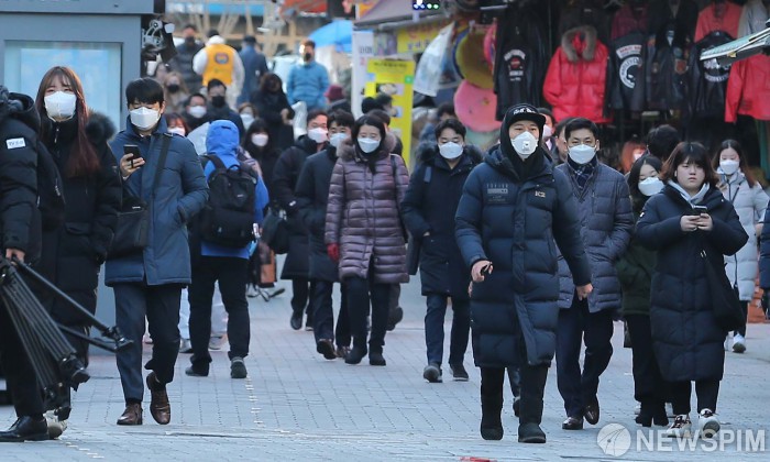 [서울=뉴스핌] 윤창빈 기자 = 5일 오전 서울 중구 남대문시장을 지나는 시민들이 신종 코로나바이러스 감염증 방지를 위해 마스크를 쓰고 길을 걷고있다. 2020.02.05 pangbin@newspim.com