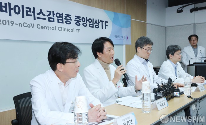 [서울=뉴스핌] 백인혁 기자 = 진범식 국립중앙의료원 감염내과 전문의(오른쪽)가 5일 오후 서울 중구 국립중앙의료원에서 열린 2번 확진자 퇴원 및 13번 환자 임상 경과 관련 브리핑에서 발언하고 있다. 2020.02.05 dlsgur9757@newspim.com