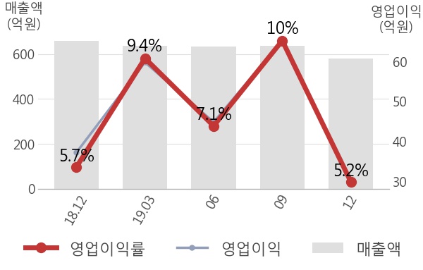 영업이익률을 자세히 살펴보면, 매출은 580억으로 전년동기 대비해서 12% 감소하였고, 영업이익도 30억으로 20% 감소하면서 전체적인 실적이 감소한 것을 알 수 있는데, 매출 감소폭에 비해 영업이익 감소폭이 더 커서 영업이익률도 하락한 것을 알 수 있다.