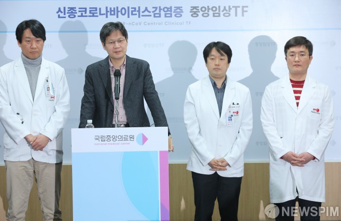 [서울=뉴스핌] 백인혁 기자 = 방지환 중앙감염병원 운영센터장(왼쪽 두번째)이 11일 오전 서울 중구 국립중앙의료원에서 열린 '신종 코로나바이러스 감염증 중앙임상TF 브리핑'에서 발언하고 있다. 2020.02.11 dlsgur9757@newspim.com