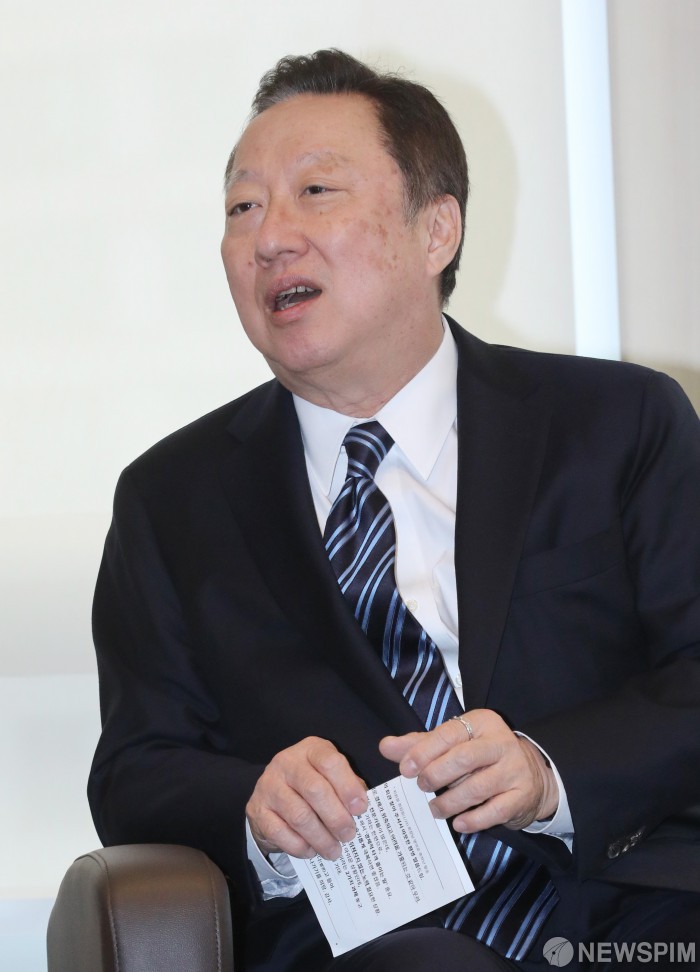 [서울=뉴스핌] 백인혁 기자 = 박용만 대한상공회의소 회장이 12일 오후 서울 중구 대한상공회의소에서 열린 김동명 신임 한국노동조합총연맹 위원장과의 간담회에서 인사말을 하고 있다. 2020.02.12 dlsgur9757@newspim.com