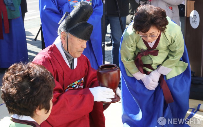 [서울=뉴스핌] 최상수 기자 = 국립공공의료대학 설립을 위한 범 대책위, 남원향교가 18일 오전 서울 여의도 국회 앞에서 국립공공보건의료대학 설립 및 운영에 대한 법률안 국회 통과 촉구 기원제를 지내고 있다. 2020.02.18 kilroy023@newspim.com