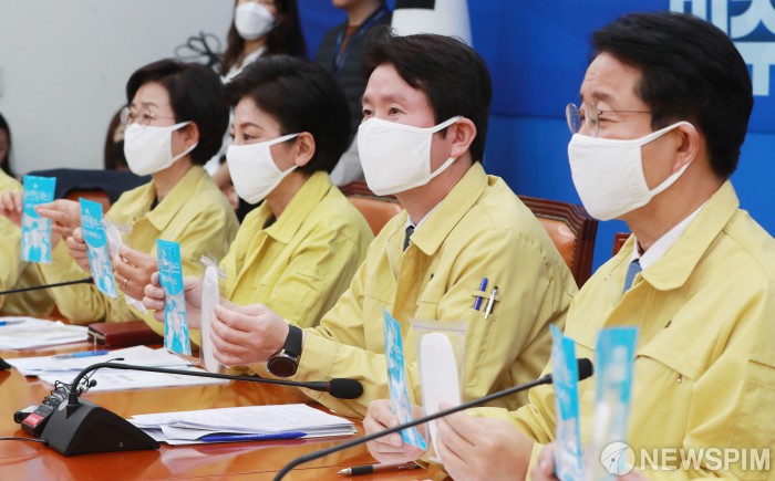[서울=뉴스핌] 이형석 기자 = 이인영 더불어민주당 원내대표가 24일 오전 서울 여의도 국회에서 열린 코로나19 국난극복위원회 실행회의에서 국민안심마스를 착용하고 있다. 2020.03.24 leehs@newspim.com