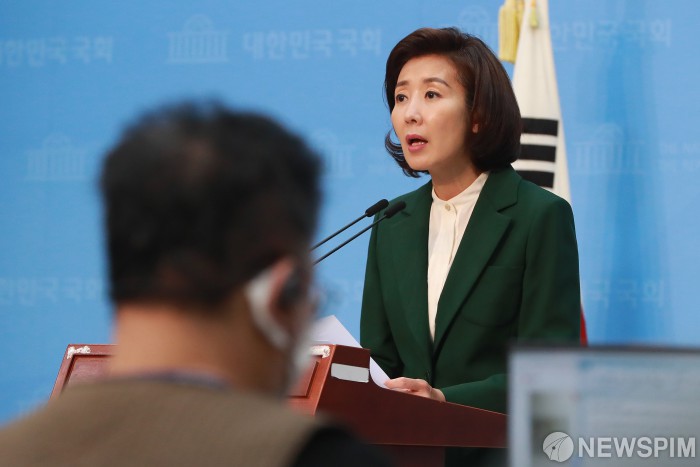 [서울=뉴스핌] 이형석 기자 = 4·15 총선 서울 동작을에 후보자 등록을 앞둔 나경원 미래통합당 의원이 26일 서울 여의도 국회 소통관 기자회견장에서 출마 기자회견을 열고 있다. 2020.03.26 leehs@newspim.com