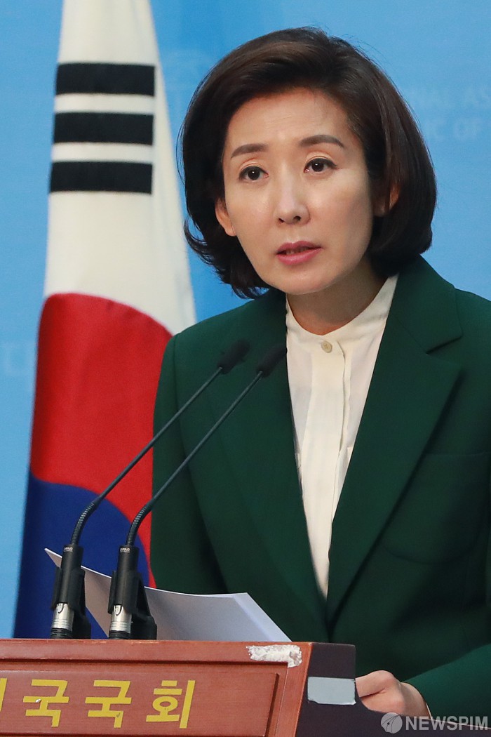 [서울=뉴스핌] 이형석 기자 = 4·15 총선 서울 동작을에 후보자 등록을 앞둔 나경원 미래통합당 의원이 26일 서울 여의도 국회 소통관 기자회견장에서 출마 기자회견을 열고 있다. 2020.03.26 leehs@newspim.com