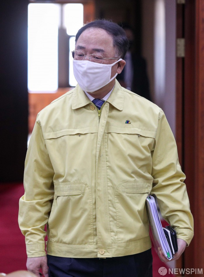 [서울=뉴스핌] 백인혁 기자 = 홍남기 부총리 겸 기획재정부 장관이 31일 오전 서울 종로구 정부서울청사에서 열린 '신종 코로나바이러스 감염증(코로나19) 대응 중앙재난안전대책본부 회의'에 참석하고 있다. 2020.03.31 dlsgur9757@newspim.com