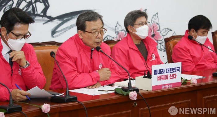 [서울=뉴스핌] 최상수 기자 = 신세돈 미래통합당 공동선거대책위원장이 31일 오전 서울 여의도 국회에서 열린 선거전략대책회의에서 모두발언을 하고 있다. 2020.03.31 kilroy023@newspim.com
