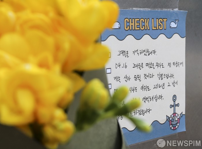 [서울=뉴스핌] 이한결 기자 = 세월호 참사 6주기인 16일 오후 서울 종로구 광화문광장의 세월호 기억공간 ‘기억과 빛’ 전시관에서 시민들이 추모를 하고 있다. 2020.04.16 alwaysame@newspim.com