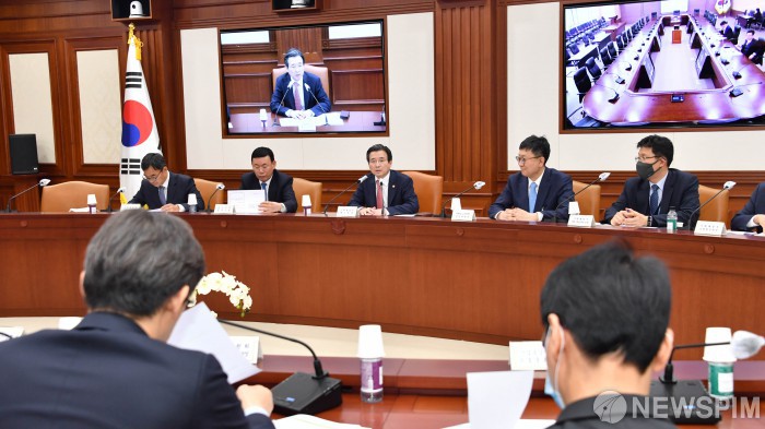 [세종=뉴스핌] 최온정 기자 = 김용범 기획재정부 1차관이 23일 정부서울청사에서 열린‘제2차 10대 규제개선 TF 전체회의’를 주재, 모두발언을 하고 있다. [사진=기획재정부] 2020.04.23 onjunge02@newspim.com