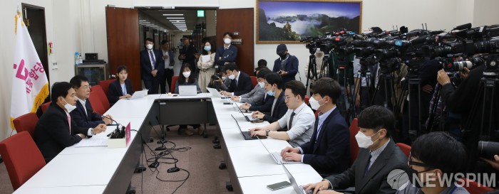 [서울=뉴스핌] 최상수 기자 = 심재철 미래통합당 대표 권한대행이 7일 오전 서울 여의도 국회에서 열린 언론간담회에서 모두발언을 하고 있다. 2020.05.07 kilroy023@newspim.com