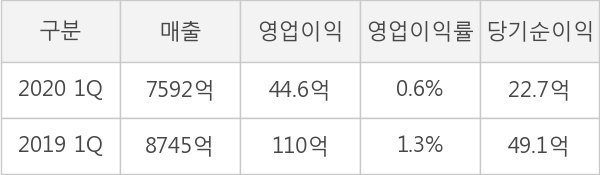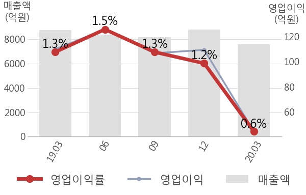 영업이익률이 지속적으로 하락하는 동안, 매출은 799억(9.5%) 감소하였고, 영업이익은 81억(64%) 감소하였다. 매출은 크게 변하지 않았지만 영업이익이 큰 폭으로 감소하면서 영업이익률이 지속적으로 하락하였다.