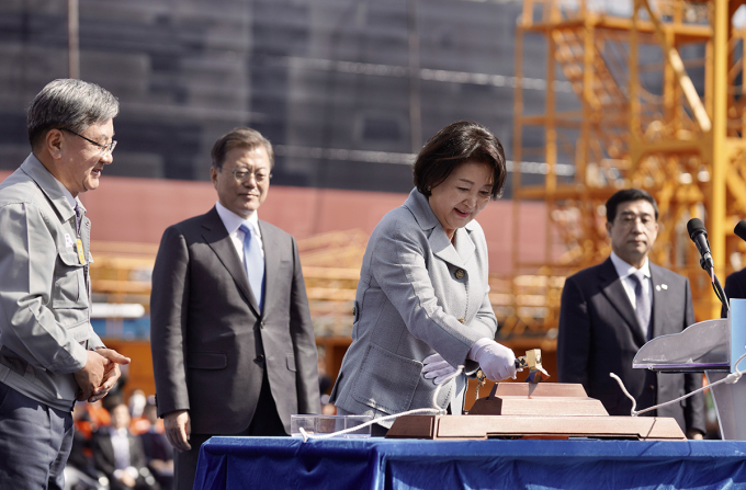 김정숙 여사, 세계 최대 컨테이너 선박 출항에 "해운강국 재건 청신호"