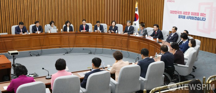 [서울=뉴스핌] 최상수 기자 = 원유철 미래한국당 대표가 15일 오전 서울 여의도 국회에서 열린 당선인 간담회에서 모두발언을 하고 있다. 2020.05.15 kilroy023@newspim.com
