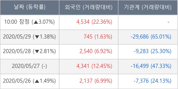 [표] 외국인ㆍ기관 순매매량 (단위 주)