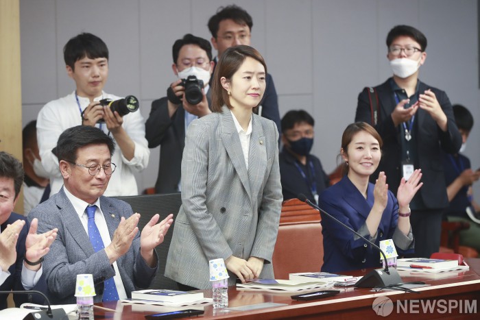 [서울=뉴스핌] 이형석 기자 = 고민정 더불어민주당 의원이 9일 오후 서울 여의도 국회 의원회관에서 '우후죽순' 제1차 정기토론회-새로운 미래와 한국 경제·사회 : 무엇을 할 것인가? 세미나에서 인사를 하고 있다. 2020.06.09 leehs@newspim.com