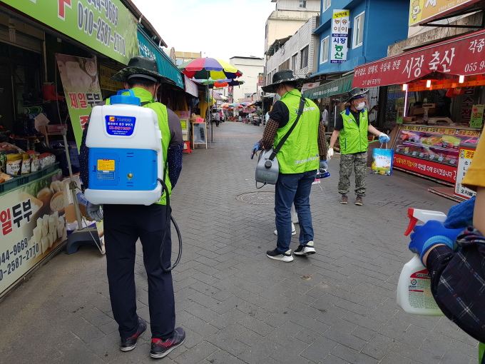 이날 봉사활동에 참가한 LH 도시정비사업처 직원 10명과 거창읍 자원봉사회 회원 등 총 15명은 거창 전통시장과 상가 일대를 구석구석 방역소독 했다. 손소독제 및 일회용마스크가 포함된 응원키트도 상인들에게 배부했다.
