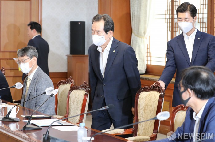 [서울=뉴스핌] 백인혁 기자 = 정세균 국무총리가 12일 오전 서울 종로구 정부서울청사에서 열린 코로나19 전문가 간담회에 참석하고 있다. 2020.06.12 dlsgur9757@newspim.com
