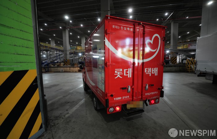 [서울=뉴스핌] 김학선 기자 = 15일 신종 코로나바이러스 감염증(코로나19) 확진자가 발생한 서울 송파구 롯데택배 동남권물류센터 내 작업장에 적막감이 흐르고 있다. 롯데택배는 확진자 발생에 따라 근무자 159명이 전원 자가격리에 들어 갔으며 물류센터는 방역 후 폐쇄조치했다. 2020.06.15 yooksa@newspim.com