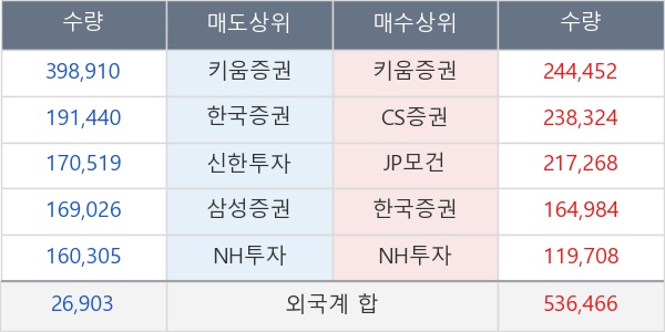 [표] 외국인ㆍ기관 순매매량 (단위 만주)