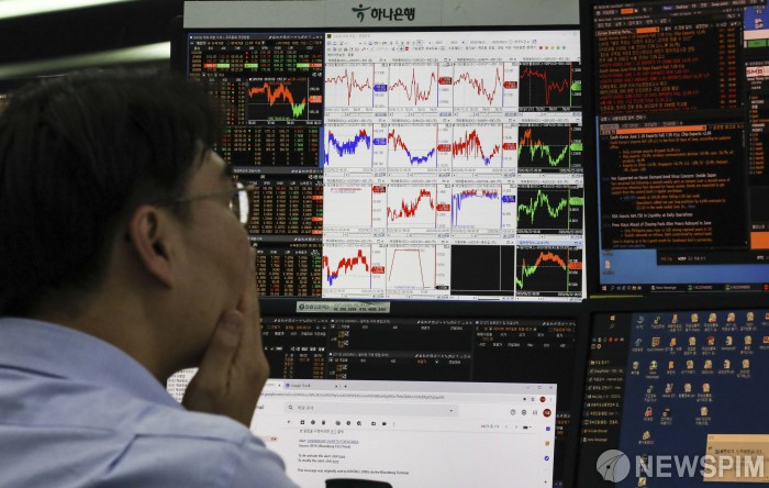 [서울=뉴스핌] 이한결 기자 = 미국에서 코로나19 확진자가 연이틀 3만명을 돌파한 22일 오전 코스피 지수가 전 거래일 대비 14.94포인트(0.70%) 내린 2,126.38에 개장했다. 코스닥 지수는 0.95포인트(0.13%) 오른 742.98에 출발했고 달러/원 환율은 3.8원 오른 1,213.4원에 장을 시작했다. 이날 서울 중구 하나은행 딜링룸에서 딜러들이 업무를 보고 있다. 2020.06.22 alwaysame@newspim.com