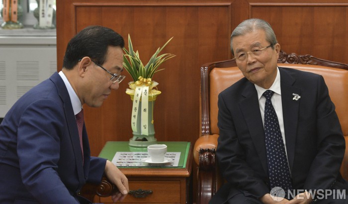 [서울=뉴스핌] 이형석 기자 = 더불어민주당의 국회 법사위원장 선출 강행에 반발하며 사찰에 칩거하던 주호영 미래통합당 원내대표가 25일 국회 복귀 후 김종인 비대위원장과 차담회를 갖고 있다. 2020.06.25 leehs@newspim.com
