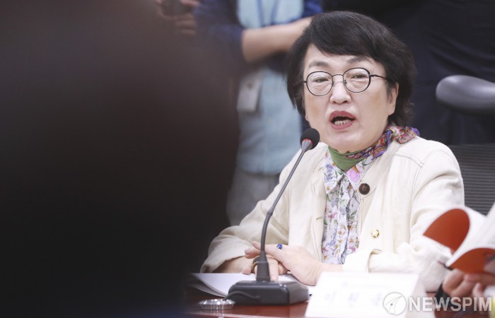 [서울=뉴스핌] 이형석 기자 = 김진애 열린민주당 원내대표가 7일 오후 서울 여의도 국회 의원회관에서 열린 국민총행복정책포럼 창립총회 및 세미나에서 인사말을 하고 있다. 2020.07.07 leehs@newspim.com