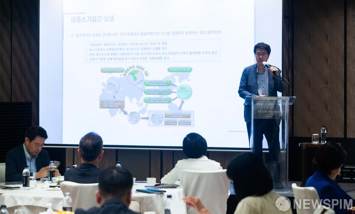 [서울=뉴스핌] 윤창빈 기자 = 22일 오전 서울 종로구 포시즌스호텔에서 열린 ESG네트워크포럼에서 이동주 중소기업연구원 수석연구위원이 발표를 하고 있다. 2020.07.22 pangbin@newspim.com
