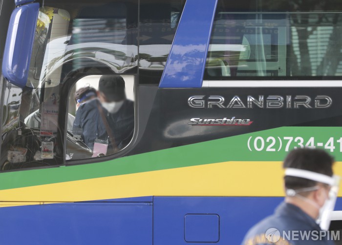 [영종도=뉴스핌] 이형석 기자 = 이라크 내 한국인 파견 근로자 290여 명이 24일 공군의 공중급유기(KC-330)를 통해 인천국제공항으로 귀국 했다. 파견 근로자들이 충북 충주 건설경영연수원과 보은 사회복무연수센터에 마련된 임시 생활시설로 이동하고 있다. 2020.07.24 leehs@newspim.com