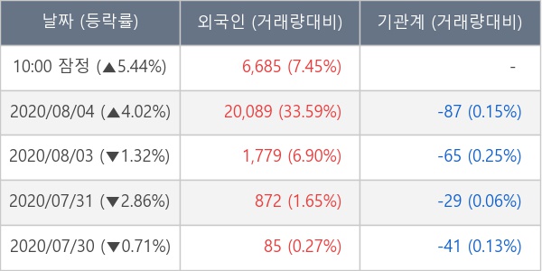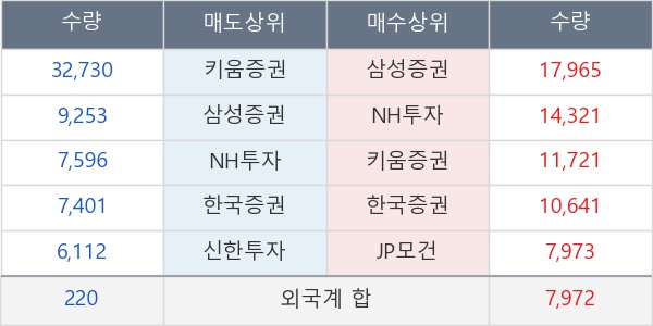 [표] 외국인ㆍ기관 순매매량 (단위 주)