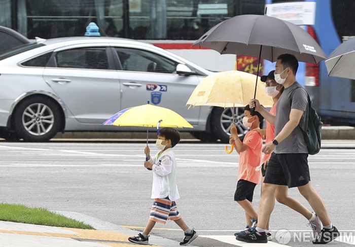 [서울=뉴스핌] 이한결 기자 = 33년 만에 장마가 가장 늦게까지 이어진 해 '공동 1위'에 오른 10일 오후 서울 종로구 청계광장 인근에서 소강상태였던 비가 다시 내리고 있다. 2020.08.10 alwaysame@newspim.com