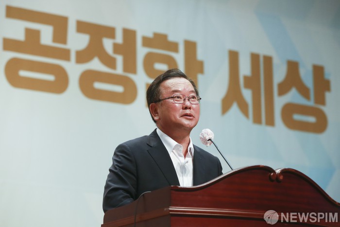 [서울=뉴스핌] 이형석 기자 = 김부겸 더불어민주당 의원이 13일 오전 서울 여의도 국회 의원회관에서 열린 '공정조달이 답이다! 공정조달제도 도입을 위한 경기도 정책토론회'에서 축사를 하고 있다. 2020.08.13 leehs@newspim.com